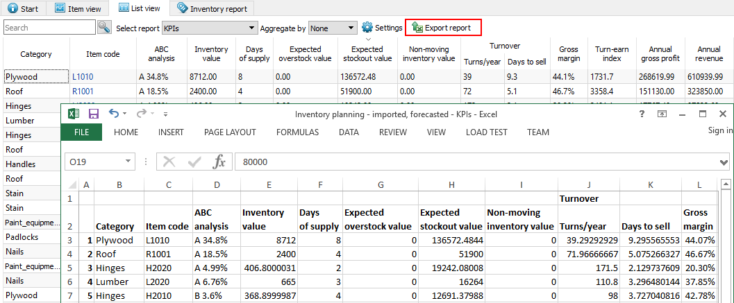 To view expected overstock and stockout value for all of the items in one report, go to the Reports tab and select the KPIs report (see figure below).