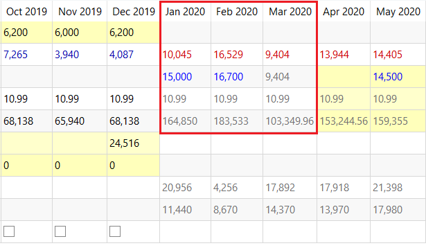 4. Notice how the chosen amount of future time periods are grayed out and not available for any additional overrides in the Table.