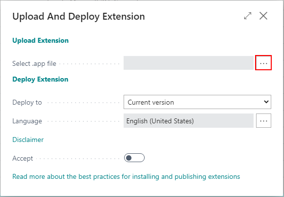 5. Click on the bar icon next to the Select .app file setting in the Upload And Deploy Extension window appeared (see figure below).