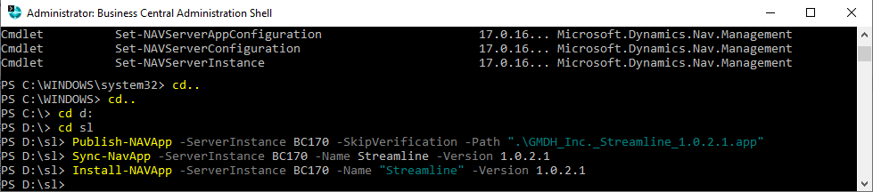 Publish-NAVApp -ServerInstance BC170 -SkipVerification -Path “.\GMDH_Inc._Streamline_1.0.2.1.app”