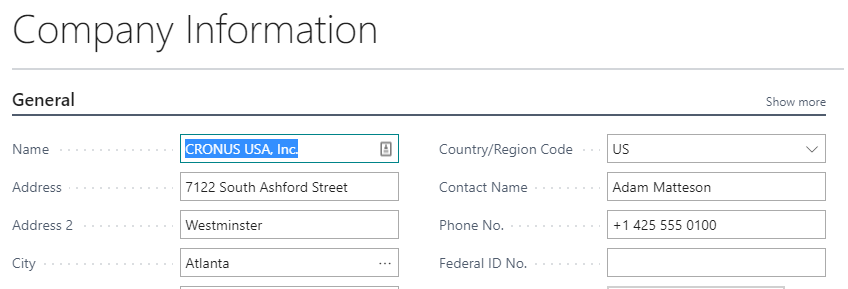 3.3. Your company name is shown in the field Name of the General section (see figure below).