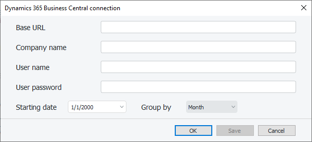 2. Enter the base URL of the Business Central API services into the Base URL field.