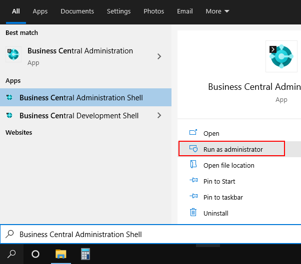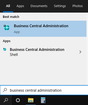 1. Start the Business Central Administration Shell as administrator (see figure below).