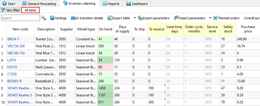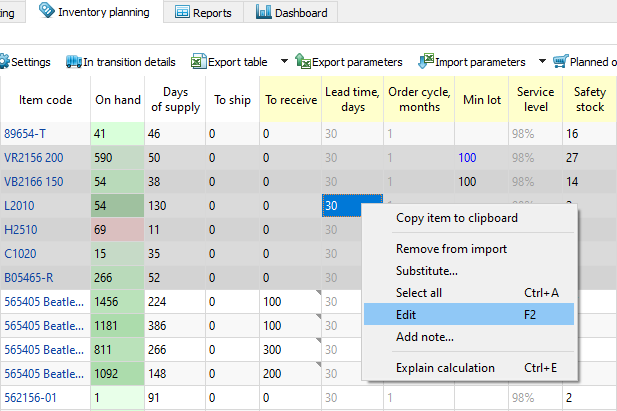 Modifying replenishment parameters using inventory reports is the easiest and the most commonly used way to adjust and fine-tune the replenishment process before getting the ordering plans.