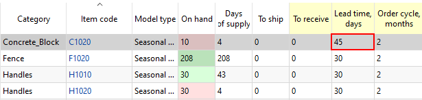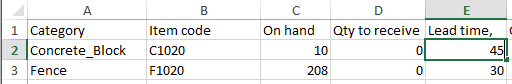 To illustrate this, we open our Excel file and change, for instance, Lead time for item C1020 (see figure below).