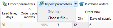 The last one – Importing from Excel – is an additional way for configuring replenishment parameters. This method can be considered as an alternative to Editing in the inventory report. It is handy in the following situations: