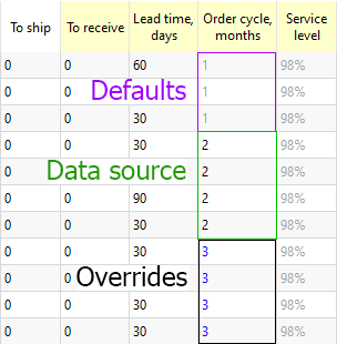 Order cycle If the planning item is sourced from a supplier, this is the frequency your order from this supplier; if it is sourced from a DC, it is the frequency you replenish from the DC. Data aggregation periods, days, or the Lead times. 1 data aggregation period