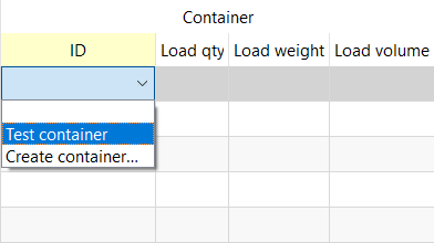 To assign the created container to SKU, double-click a cell under the ID column on a needed item’s line.