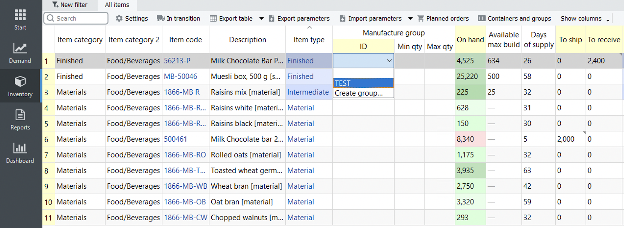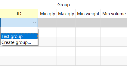 To assign the newly created group to the item code, double-click on the cell under the ID column and select the needed group from the list.