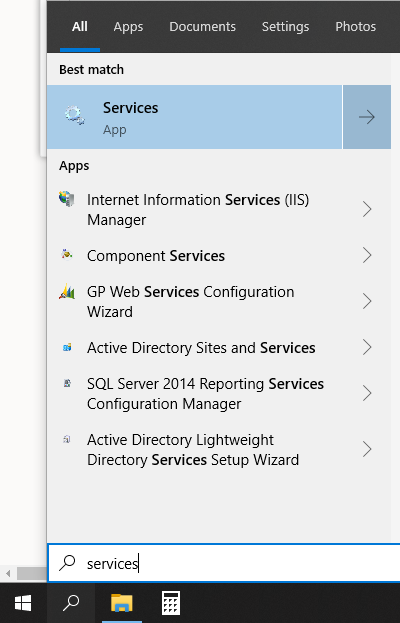 6.1. Go to the Windows Taskbar, click the Search icon, type in 'Services', and press Enter (see figure below)