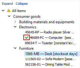 All of the Forecasting settings can be applied at every level of the tree. A green checkmark in the Tree view indicates that the Approved status has been applied (see figure below).