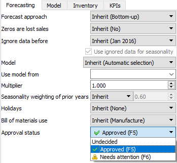 Streamline has a forecast approval system that helps you to set which forecasts have been reviewed and approved, and which need further attention. The approval system allows users to authorize or place emphasis on generated forecasts.