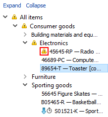 If you are not sure which forecast correction to make currently (whether it is changing the model type or any other) and have decided to make the correction later, you can set the approval status to Needs attention as a reminder. Then an attention icon is added to the node and all the nodes above it to easily spot these items if the tree is collapsed (see figure below).