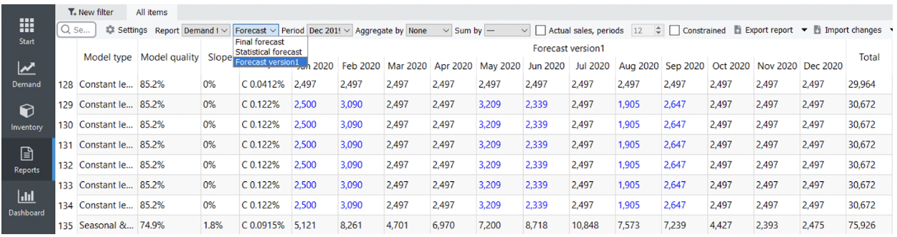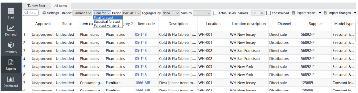 This report may be represented as a ‘Final forecast,’ ‘Statistical forecast,’ or ‘Forecast versions.’