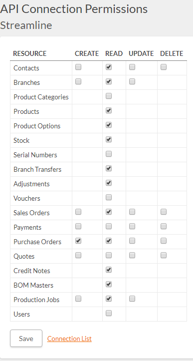 次の手順は、API接続のパーミッション設定です。これは、GMDH Streamlineが必要なデータのみにアクセスさせるためです。次の手順に従い、設定します。: