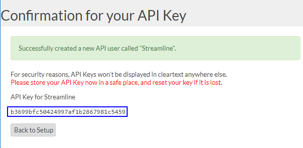 1. Back to Setupボタンをクリックし、API設定ページに戻ります。
