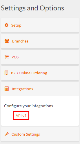 3. Integrations セクションを展開し、API v1 リンクをクリックします(下記の図を参照)。