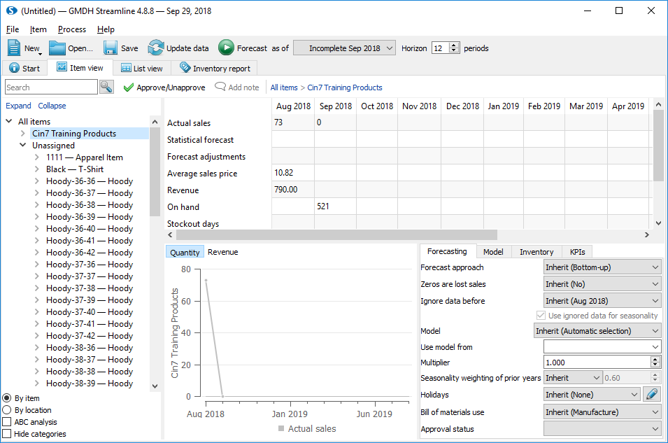 現在のところ、Cin7 APIはサイズ設定品目について手持ち在庫履歴を公開していません。GMDH Streamlineは、サイズ設定品目について以下の対応ができません。: