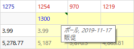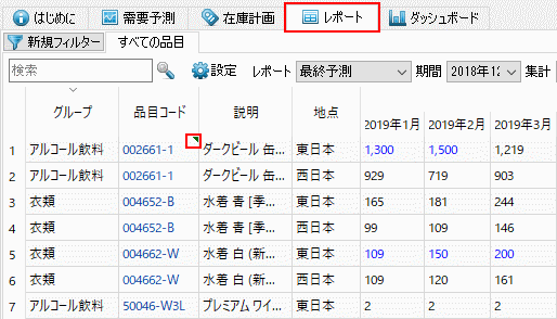 コメントが追加された計画品目は、レポートと在庫計画にて緑色の三角形が表示されます。