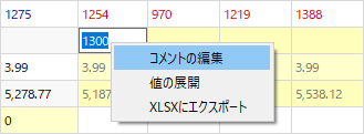 2. テーブル内の上書きされたセルにて右クリックし、右クリックメニューからコメントの編集を選択します。