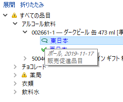 2. ツリー ビューにて、SKUか計画品目を選択します。