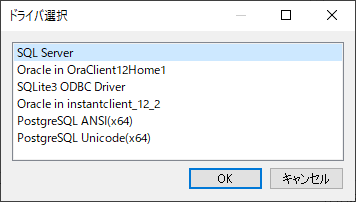 ドライバ選択後、データベース(またはデータファイル)固有の接続設定ダイアログが表示されます。ダイアログにログインユーザー情報を入力します。ダイアログにて作成された接続文字列が、データソース 名フィールドに自動で設定されます。