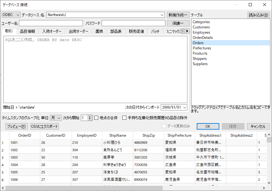 下記にて、データベース 接続 ダイアログの利用方法と一般的な機能を紹介します。ユーザーのデータベースとの接続の確立方法と、データベースのテーブルの中身を読む方法を学ぶことができます。