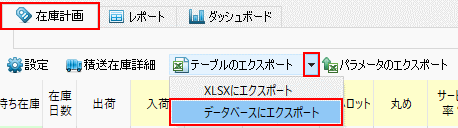 レポートは、予測在庫のエクスポートタブを利用してエクスポートします。この節では、レポートできる部分を紹介します。