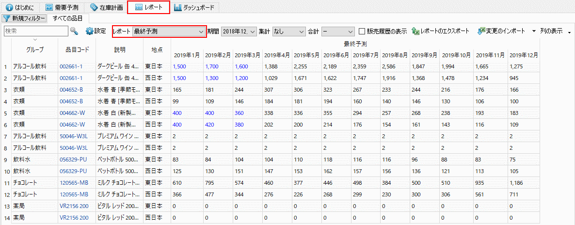 GMDH Streamlineには、数多くのレポートがあります。その中には最終予測レポートがあります。このレポートは、統計的予測値とユーザーの調整値で上書きした予測値が保存されています。これが、GMDH Streamlineの需要計画になります。