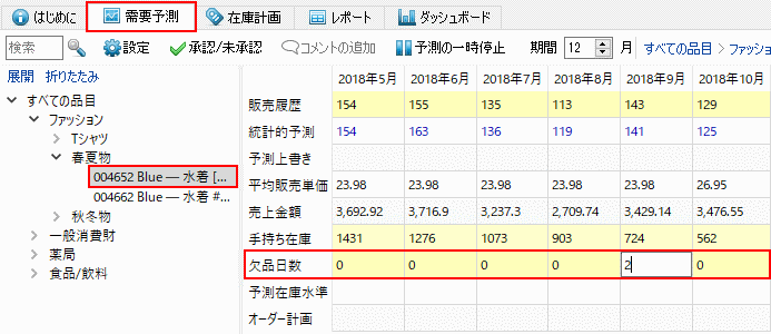 次の手順に従い、欠品日数履歴を修正します。: