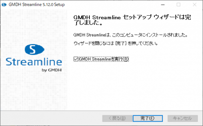 • インストール終了時に、GMDH Streamlineの起動がオプションとして選択されています。適宜変更します。 終了をクリックして、インストールを完了します。: