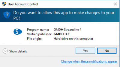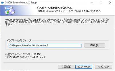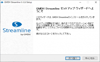 更新インストールの場合、インストール前にすべてのGMDH Streamlineのウィンドウを閉じてください。