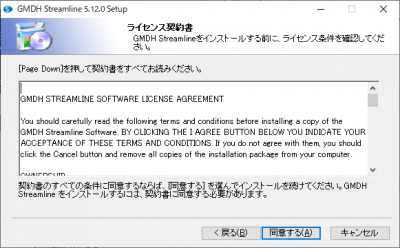 • 同意するボタンをクリックし、ライセンス契約書に同意しインストールを続けます。: