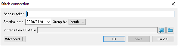 1. メニューのファイル > 新規 > Stitch 接続を選択します。Stitch 接続ダイアログが開きます。