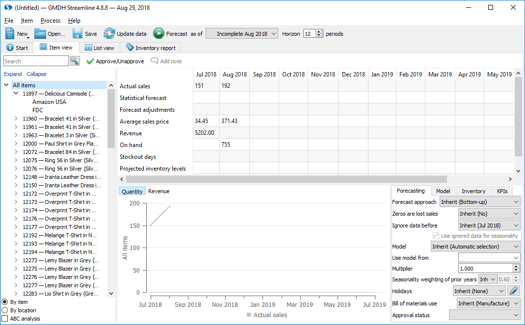 GMDH Streamlineにインポートされたデータは、在庫管理システムにて記載されています。