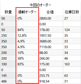 ここで、今回のオーダーセクションに、過剰オーダー列が追加されます(下記の図を参照)。
