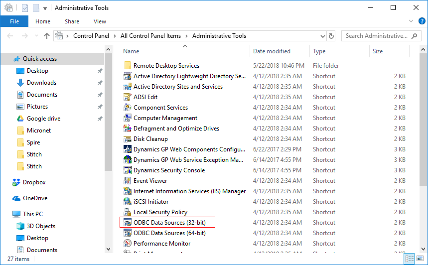 2. If your OS is 32-bit, run the ODBC Data Sources. If it is 64-bit, run the ODBC Data Sources (32-bit) (see figure below).