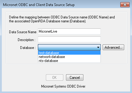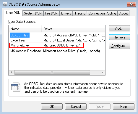 1. Creating an ODBC connection configuration that will be used to connect to the Micronet's database.