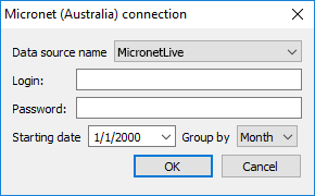 1. Go to the menu File > New > Micronet (Australia) connection. The Micronet (Australia) connection dialog appears (see figure below).
