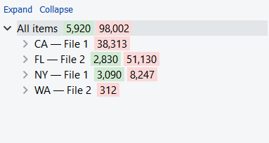 5. Once the .gsl file is created you can see Items A, B, and C from File 1, and Items 1, 2, and 3 from the File 2 are all present in the same project under two different locations named accordingly.