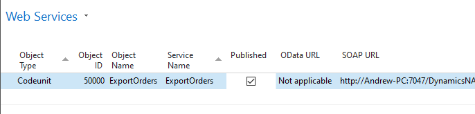 After that, NAV will automatically generate an URL for the web-service in the SOAP URL column. This URL is used to call the service by other applications like Streamline.