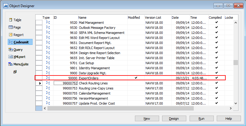 7.2. Give the codeunit a name. For example, 'CreatePO'. Ensure that Compiled option is checked (see figure below).