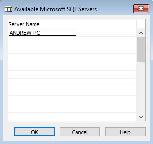 2. Click the black arrow next to the Server Name field, select your SQL Server from the list and click OK (see figure below).