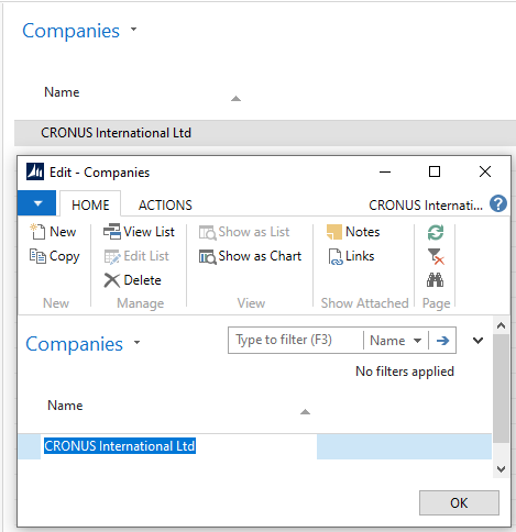 4.3 Double click on the company name in the list of companies. The Edit - Companies dialog appears.