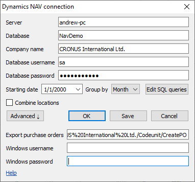 Remove this page from your book Dynamics NAV connection is bi-directional: on one hand, it uses the functionality of the Database connector to import data from the NAV database, on the other hand, it can export purchase orders through NAV web-services created beforehand.