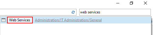 1. Open NAV Client and type into the search bar 'web services'. Click on the Web services link (see figure below)