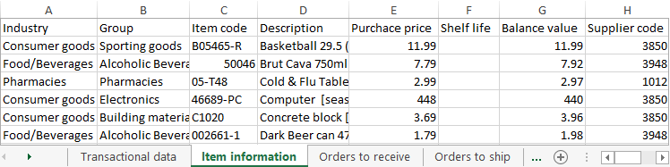 A CSV-file should contain data types from both Transactional data and Item information (see the table below).