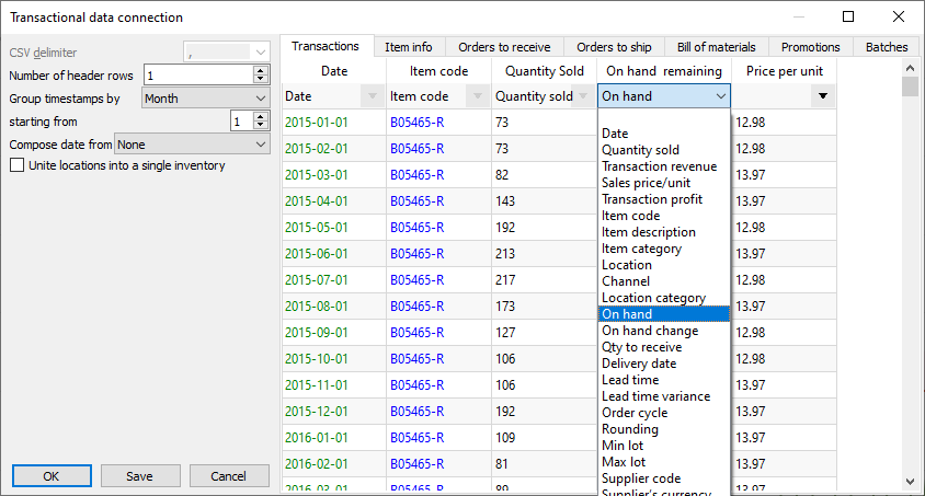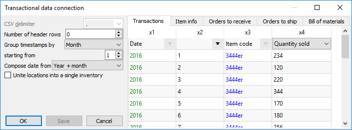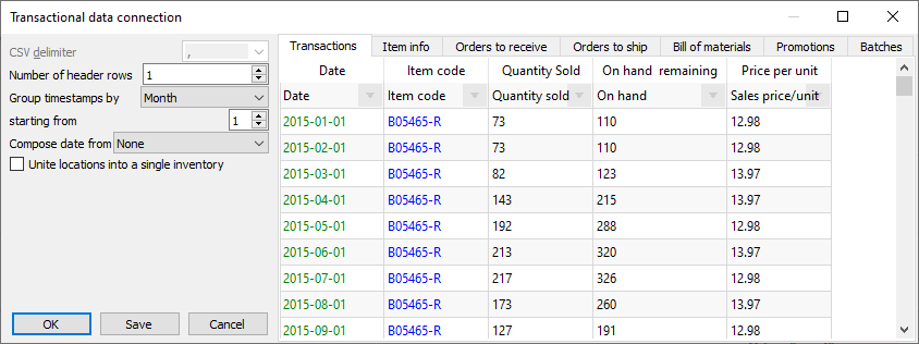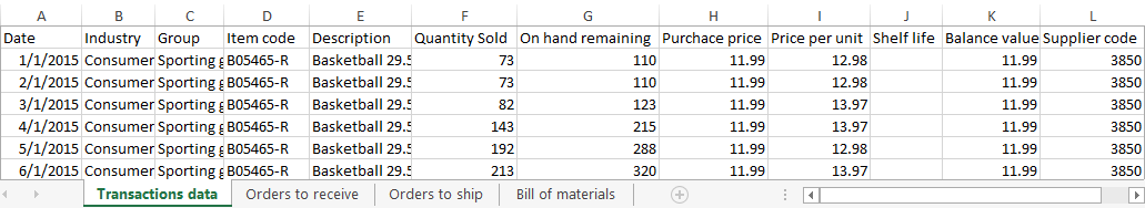 Thus, if you keep sales history and inventory information in a database, ERP, accounting or inventory management system, and have an ability to make an extract of sales transactions as Excel or CSV file, you can use the Transaction spreadsheet connection to create a new Streamline project.