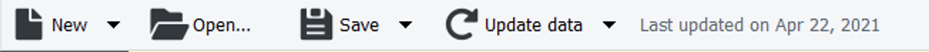 Save saves a new project or save changes to the already created project. Update data loads new data from the data source into the current project, for example, a new sales period.