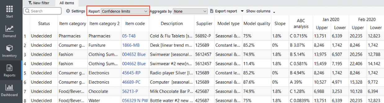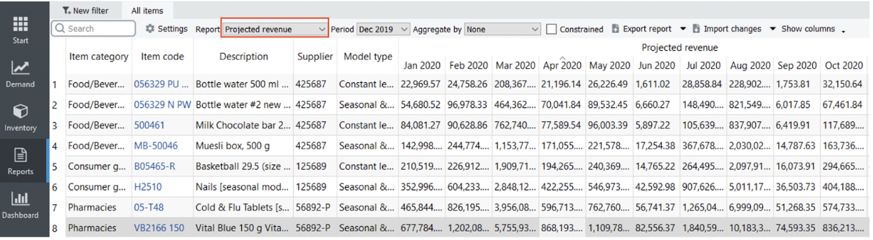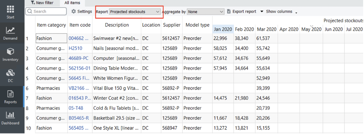 * Constrained option influences the display of the demand by taking into account the expected stockouts, which means that if, for instance, the stockout is expected, then the demand will be decreased by the stockout value.